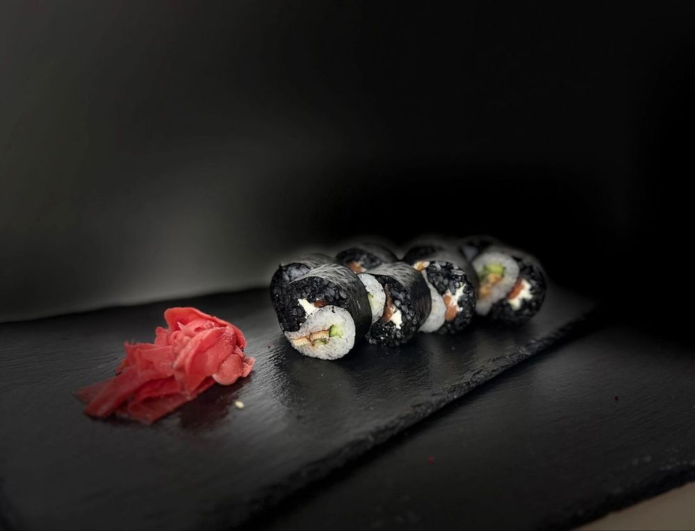 Состав: рис, нори, угорь, огурец, сыр, лосось, 30мл соевого соуса, 30мл имбиря, 5мл васаби