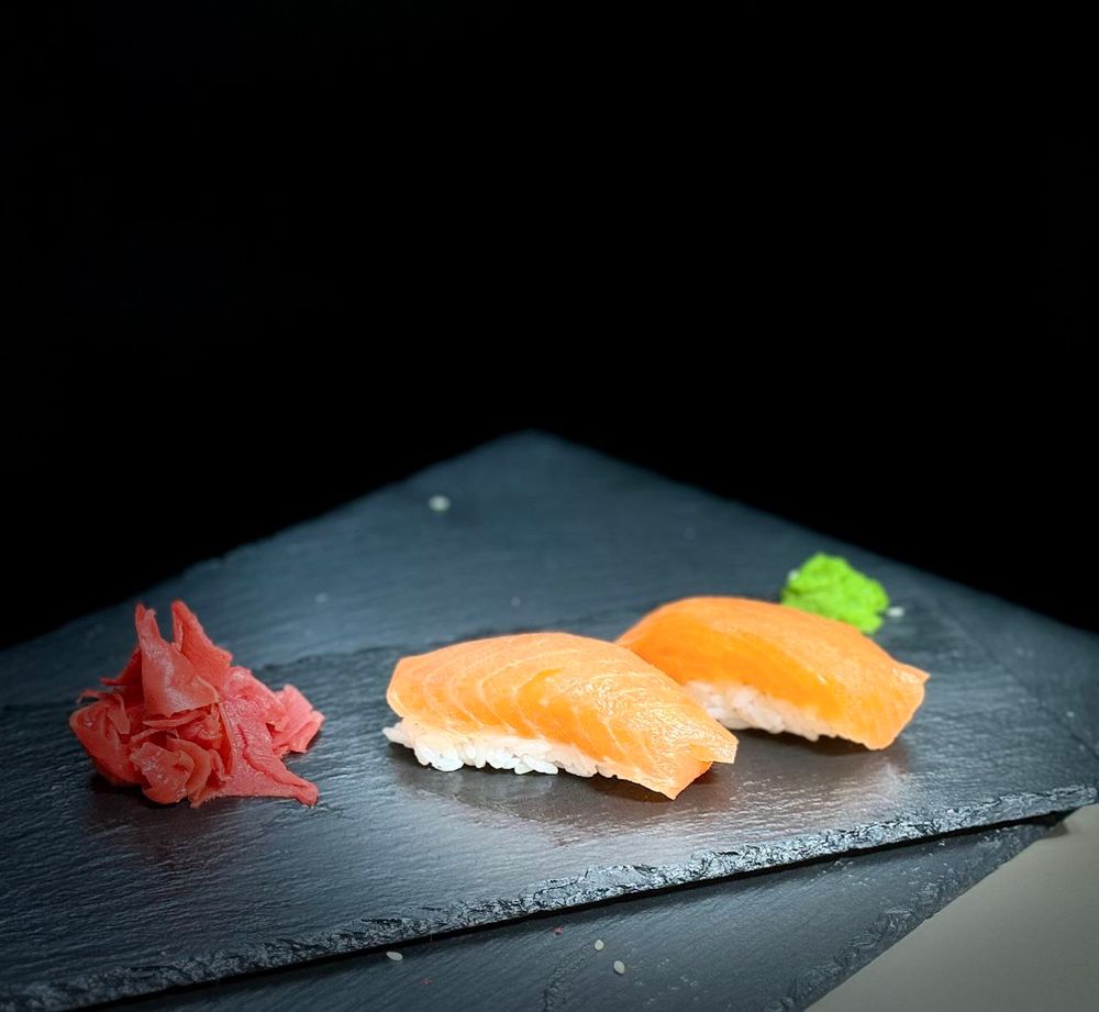 Состав: рис, лосось, 30мл соевого соуса, 30мл имбиря, 5мл васаби